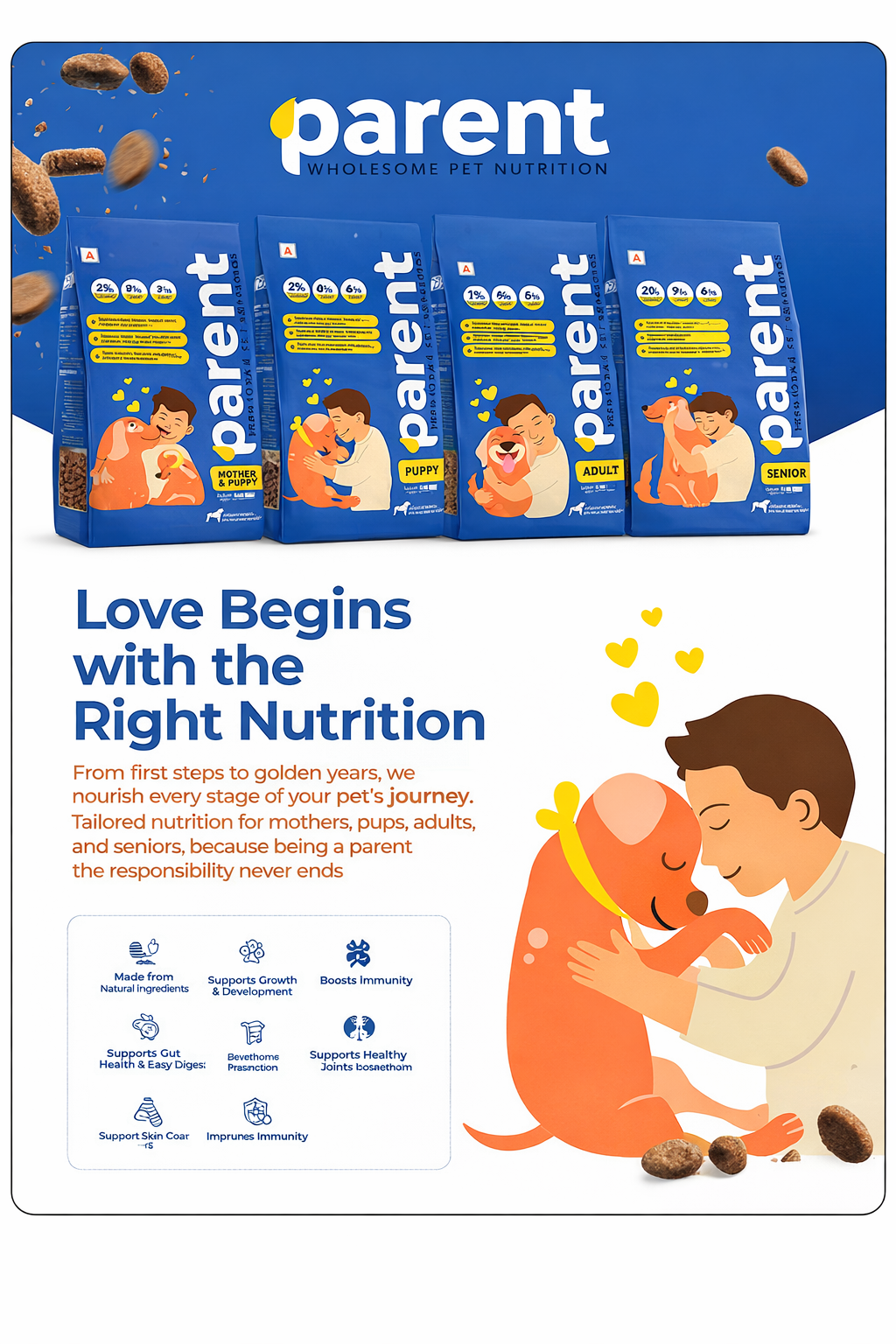 In PARENT–WHOLESOME PET NUTRITION, we blend science, love, and real ingredients to create food that truly promotes your pet’s well-being.
